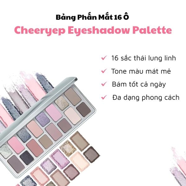 Bảng Phấn Mắt 16 Ô Cheeryep Eyeshadow Palette không chỉ giúp bạn dễ dàng thử nhiều phong cách khác nhau, mà còn chăm sóc trải nghiệm trang điểm từ chất phấn đến hiệu ứng màu sắc.
