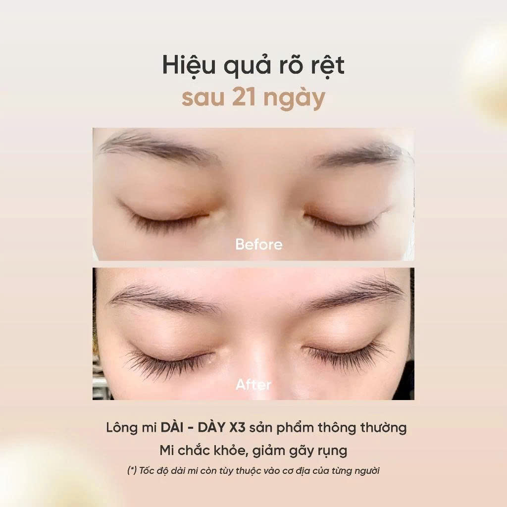 + Hiệu quả trông thấy sau 3 tuần sử dụng thường xuyên. Hiệu quả gấp 3 lần so với các loại dưỡng mi thông thường
