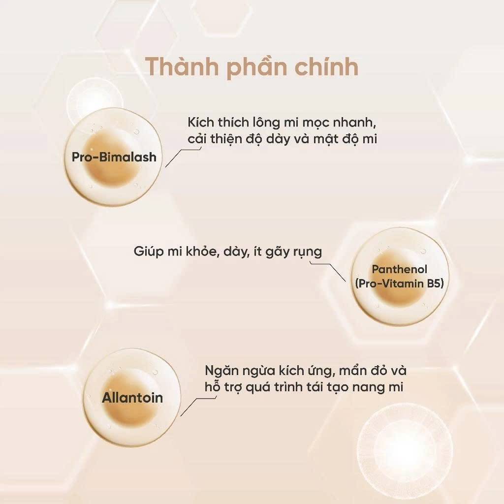 + Pro-Bimalash: key active giúp cải thiện cấu trúc của sợi mi, đem đến kết quả rõ rệt về độ dài, độ dày và mật độ mi