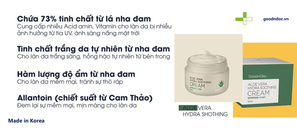 Kem dưỡng Lô Hội GoodnDoc Aloe Vera Hydra Soothing Cream giúp mịn màng và trắng sáng da. Sản phẩm được tạo ra từ chiết suất từ lá cây Lô Hội. Đây là sản phẩm được các Bác Sĩ da liễu và các chuỗi Spa có tiếng tin dùng.