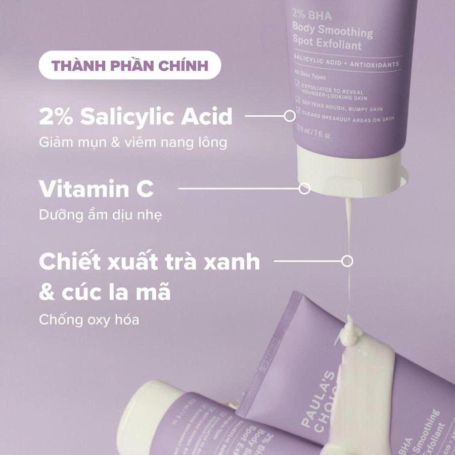 + 2% Salicylic Acid: cải thiện các vấn đề mụn cơ thể, viêm nang lông, cho da mịn màng