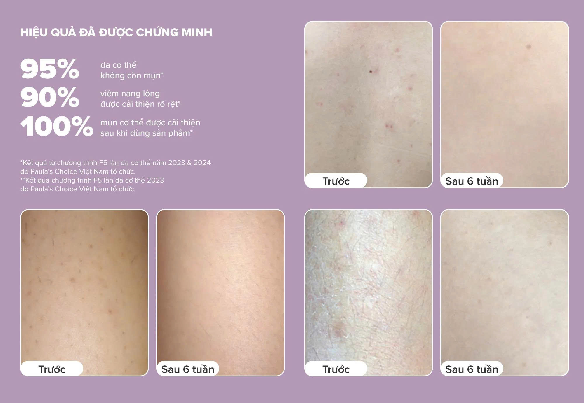+ Phù hợp với da cơ thể gặp tình trạng viêm lỗ chân lông/viêm nang lông hoặc mụn.