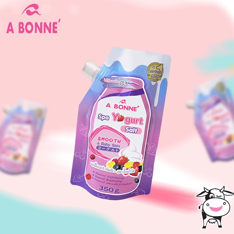 Muối Tắm Tẩy Tế Bào Chết Cơ Thể, Làm Sáng Da, Dưỡng Da Mịn Màng A Bonne Spa Salt là tẩy tế bào chết body thuộc thương hiệu A Bonne đến từ Thái Lan. Cùng với các thành phần yogurt, vitamin C, tinh chất sữa bò cung cấp độ ẩm, nuôi dưỡng làn da mềm mại, hỗ trợ giảm tình trạng mụn lưng cũng như viêm nang lông, cho bạn làn da hồng hào, trắng mịn rạng rỡ.