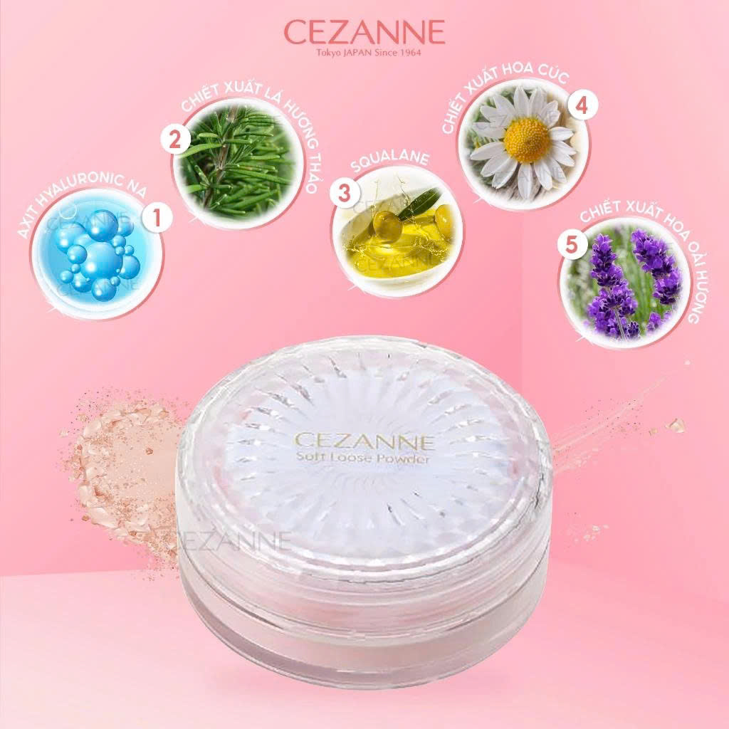 Phấn phủ dạng bột Cezanne Soft Loose Powder với kết cấu tơi xốp giúp hiệu chỉnh lượng dầu cho lớp nền mỏng mịn tự nhiên.
