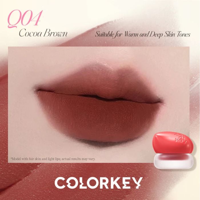 Colorkey là thương hiệu mỹ phẩm đến từ Trung Quốc, nổi tiếng nhờ phong cách trẻ trung, hiện đại, và các sản phẩm có mức giá dễ tiếp cận nhưng chất lượng vượt mong đợi. Thương hiệu nhanh chóng ghi dấu ấn với những dòng son được giới trẻ yêu thích nhờ bảng màu đa dạng, công thức nhẹ môi và thiết kế ấn tượng. Son Bùn Đa Năng Dạng Hũ Colorkey Bouncy Creamy Multi-Purpose Mud là minh chứng rõ ràng cho tinh thần sáng tạo của Colorkey, đem đến một sản phẩm vừa tiện lợi vừa cá tính.