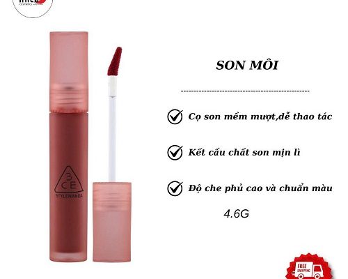 Thuộc dòng son water-tint, lớp kết thúc không bóng mà có hiệu ứng mờ nhẹ như được phủ một lớp blur filter. Chất son mỏng nhẹ, không gây nặng hay khô môi. Đặc biệt, khi thoa son 3CE Blur Water Tint bạn sẽ không lo son sẽ bị dính ra khẩu trang và thành cốc khi ăn uống.