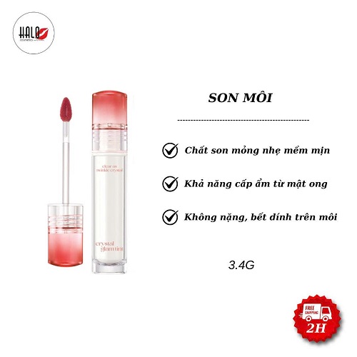 Son Kem Clio Crystal Glam Tint 3.4g là dòng son tint bóng có thiết kế độc đáo cùng chất son mỏng nhẹ mềm mịn tạo hiệu ứng cho đôi môi căng bóng, tràn đầy sức sống. Son có chứa thành phần mật ong giúp tăng khả năng cấp ẩm cho đôi môi mềm mại hơn.