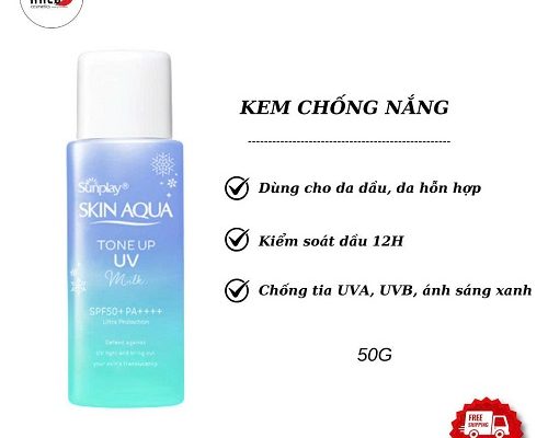 Sữa Chống Nắng Hiệu Chỉnh Sắc Da Sunplay Skin Aqua Tone Up UV Milk là dòng sản phẩm chống nắng da mặt đến từ thương hiệu Sunplay – nhãn hàng chống nắng dưỡng da nổi tiếng xuất xứ Nhật Bản, với 3 tác dụng chỉ trong 1 sản phẩm: khả năng chống nắng cực đỉnh (SPF 50+ PA++++), giữ ẩm và dưỡng sáng da tối ưu (Vitamin C & Vitamin B3) và khả năng hiệu chỉnh sắc da, nâng tone da rạng rỡ. Đặc biệt, sản phẩm còn kiểm soát dầu hiệu quả nhờ kết cấu dạng sữa mỏng mịn, nhẹ tênh cùng các hạt phấn siêu mịn.